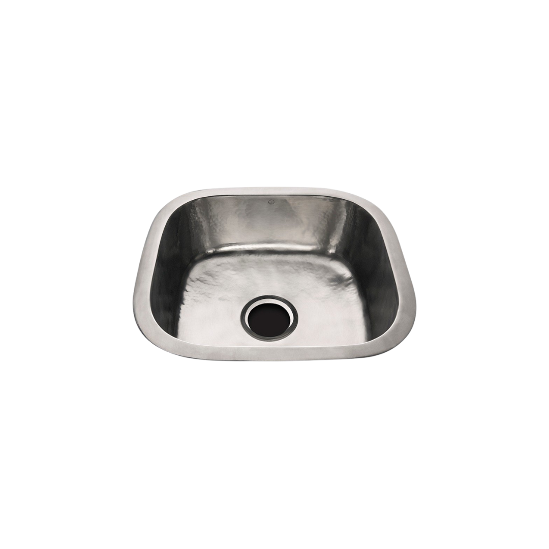 Waterworks Normandy 18 1/2" x 17 5/16" x 6 11/16" Hammered Copper Square Kitchen Sink with Center Drain in Antique Brass