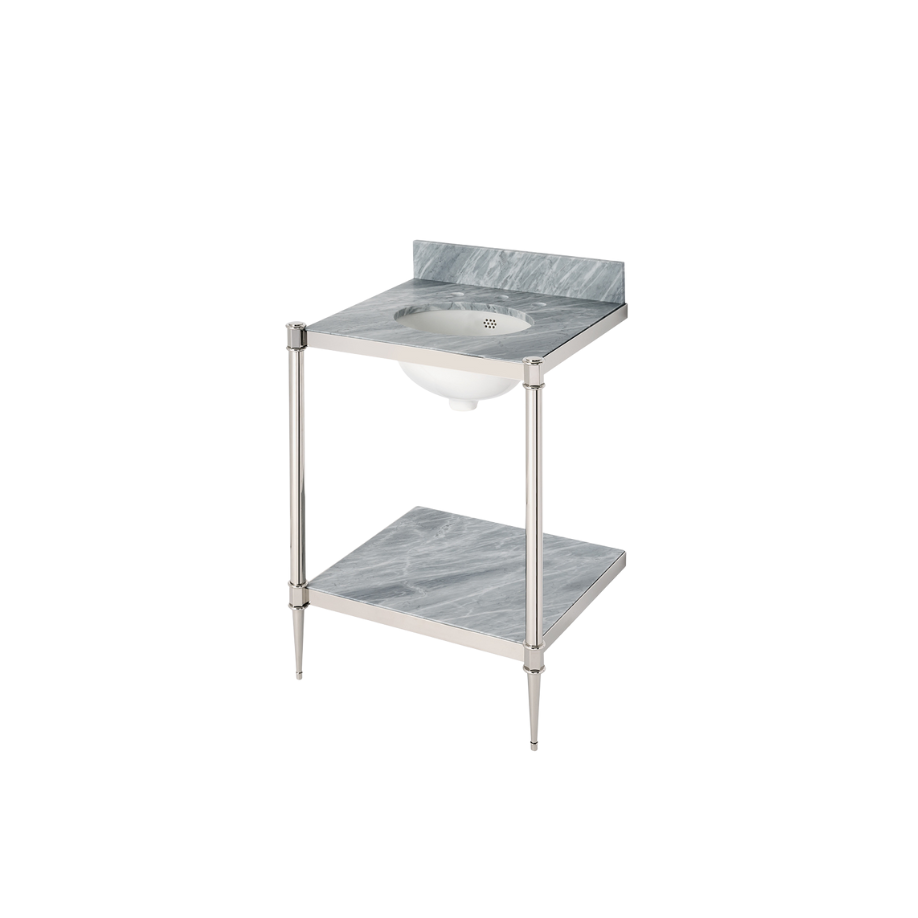 Waterworks Camden Round Two Leg Washstand 26" x 23" x 34" in Nickel